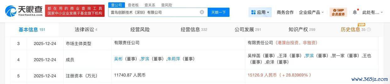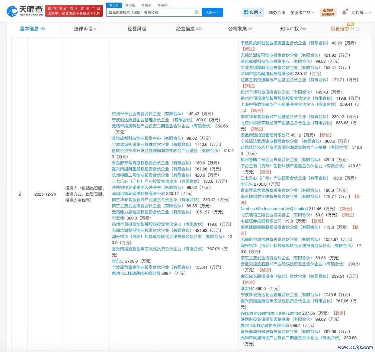 天眼查App裸露,近日,雷鸟立异时刻(深圳)有限公司发生工商变更,新增北京中移数字新经济产业基金合资企业(有限合资)、上海中移数字转型产业私募基金合资企业(有限合资)、茅台金石(贵州)生物科技产业基金合资企业(有限合资)等为鼓吹,同期,注册本钱由约1.17亿东谈主民币增至约1.51亿东谈主民币。