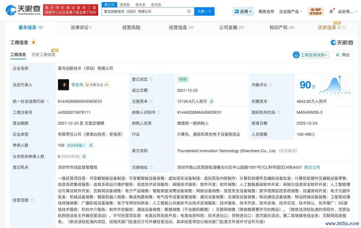 雷鸟立异时刻(深圳)有限公司建立于2021年12月,法定代表东谈主为李宏伟,狡计边界含可穿着智能开发制造、可穿着智能开发销售、虚构施行开发制造、虚构施行本色制作、计较机软硬件及扶持开发批发、东谈主工智能基础软件开发等,现由李东生、宁波挚诚拓远企业措置合资企业(有限合资)、惠州TCL移动通讯有限公司及上述新增鼓吹等共同捏股。公开信息裸露,雷鸟立异是一家专注于AR规模的创业公司,中枢团队来自AR、手机和智屏等规模。产物涵盖裸露、AI、东谈主机交互等时刻规模。